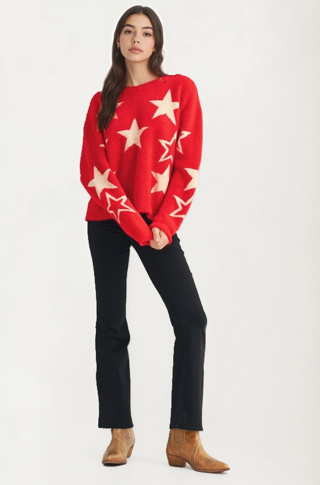Cozy Star Pattern Sweater with Relaxed Fit and Soft Knit