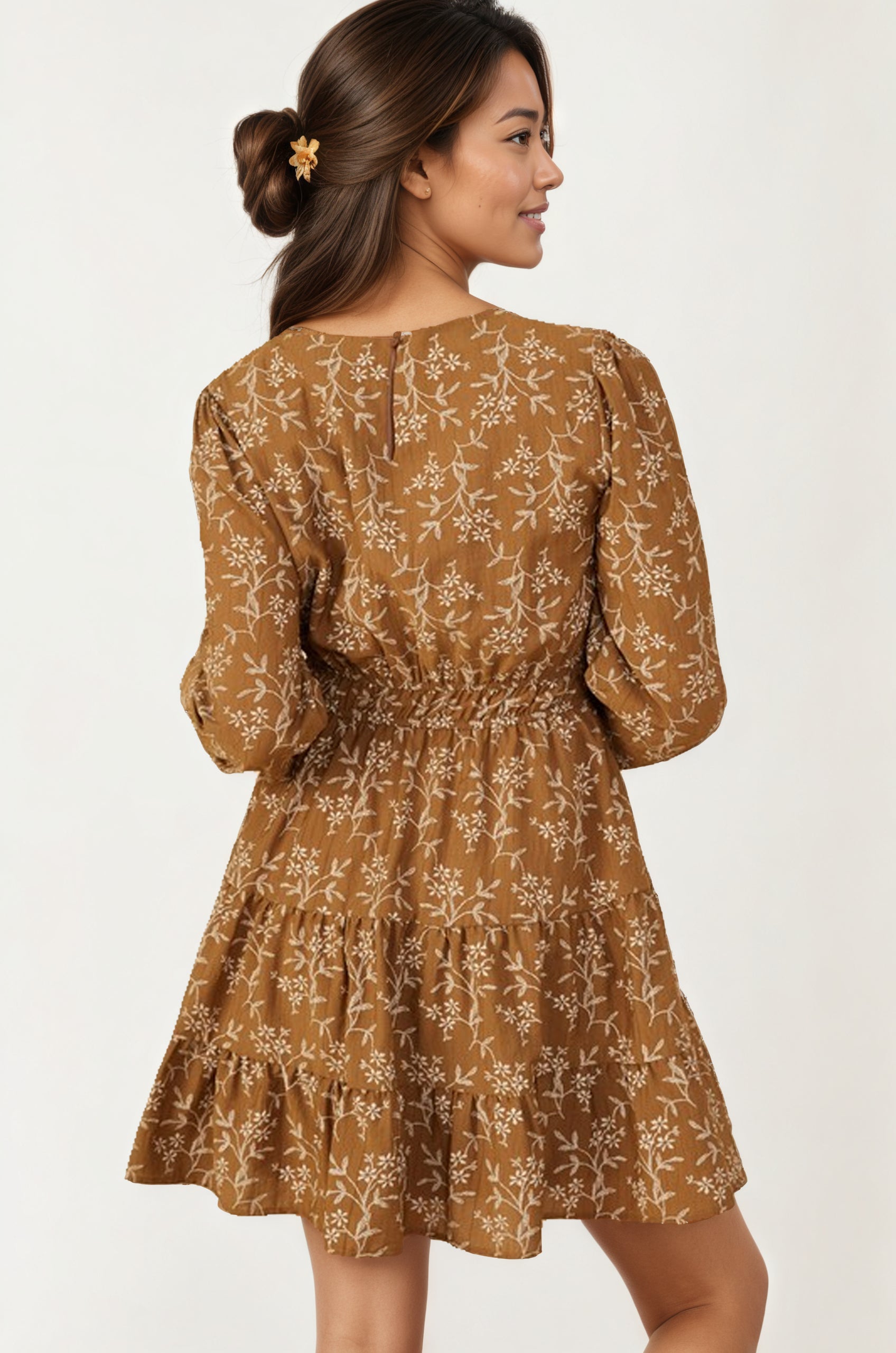 - Romantic long sleeve mini dress featuring a smocked waist for shape, tiered skirt for movement, and a delicate floral print for timeless feminine charm.